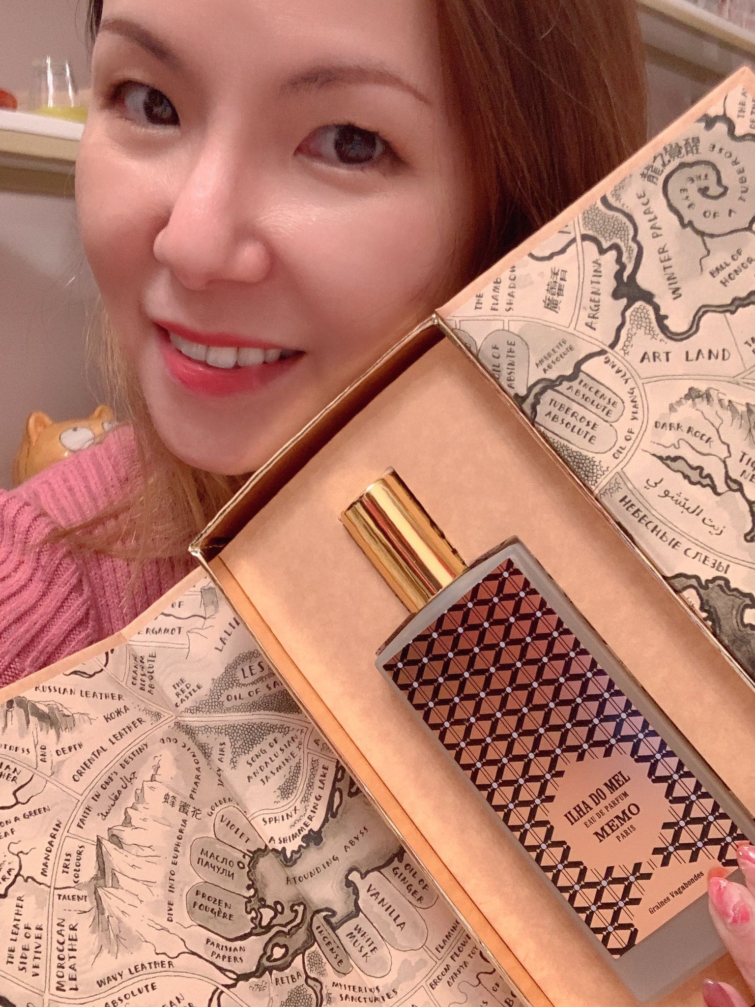 「有天我用了Nathalie Feisthauer給我的sample。想像一下,我身處西班牙安達魯西亞的一個小村落,那純樸的鄉村座落在山的一麓,可以遠眺地中海的景致。那裡有驢子四處走,但只有一間酒吧,炎夏的晚上,大夥兒身穿短褲T恤,擠進酒吧歎冷氣。我一直聞到一陣香味,於是就問周圍的人:你塗了甚麼香水﹖他們答我這款、那款、甚麼甚麼牌子……但都不是我聞到的味道。直到回家的路上,月色灑滿一地,風輕吹來,我手上的drydown美得像仙境一樣,幾乎想咬一口自己的手臂。我想起了,那是Nathalie的作品對我說話。」